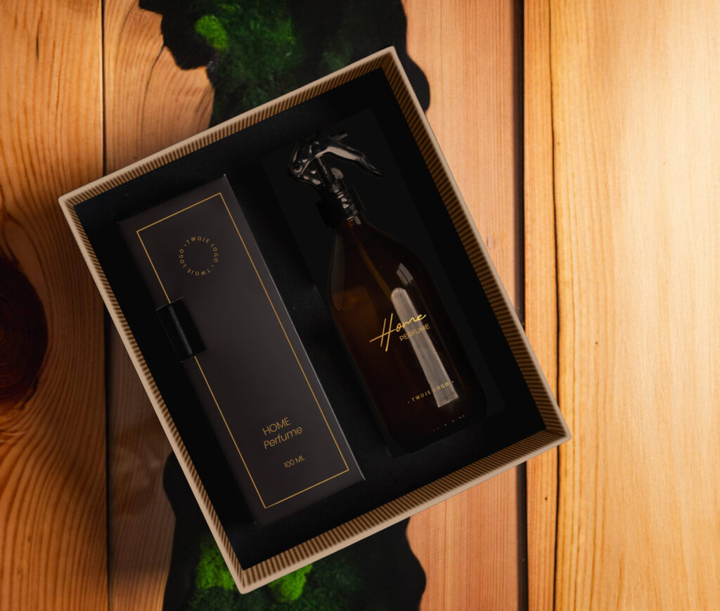 Skład: personalizowany dyfuzor zapachowy, personalizowana mgiełka do pomieszczeń
